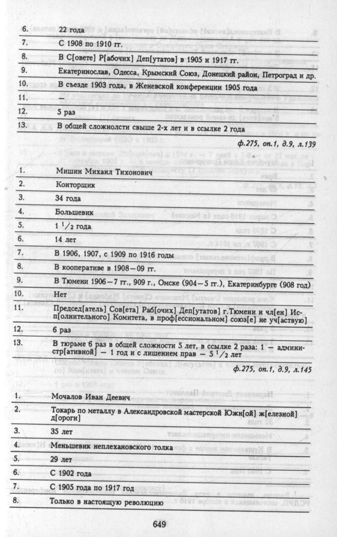 Материалы о списочном составе организаций и делегатов, представленных на общероссийской конференции РСДРП 6 - 12 мая. Личные анкеты делегатов. Мишин Михаил Тихонович
