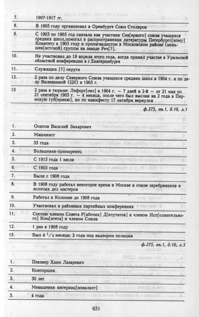 Материалы о списочном составе организаций и делегатов, представленных на общероссийской конференции РСДРП 6 - 12 мая. Личные анкеты делегатов. Певзнер Хаим Лазаревич