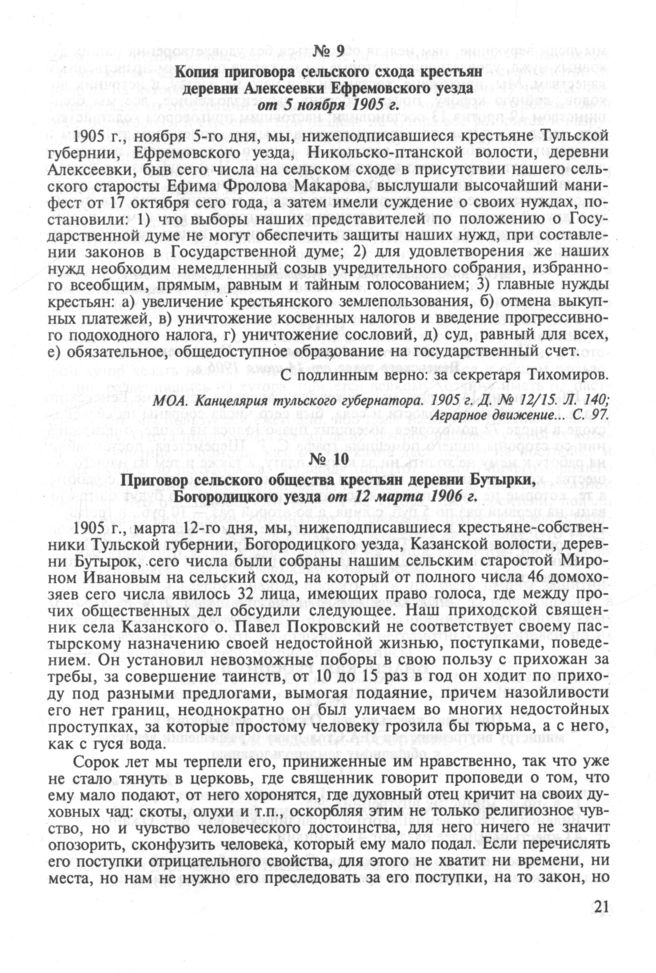 Копия приговора сельского схода крестьян деревни Алексеевки Ефремовского уезда от 5 ноября 1905 г.