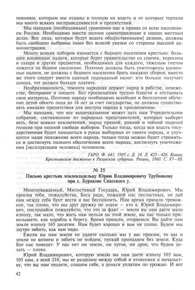Письмо крестьян землевладельцу Юрию Владимировичу Трубникову при с. Буракове Спасского у. // ГАРФ. Ф. ДП 102. 1905 г. № 2550. Ч. 54.