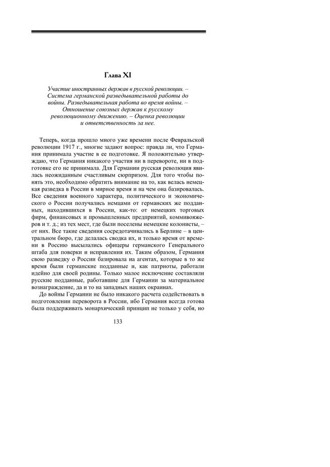 Участие иностранных держав в русской революции. - Система германской разведывательной работы до войны. Разведывательная работа во время войны. - Отношение союзных держав к русскому революционному движению. - Оценка революции и ответственность за нее.