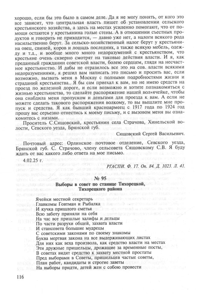 Выборы в совет по станице Тихорецкой, Тихорецкого района // РГАСПИ. Ф. 17. Оп. 84. Д. 1023. Л. 189.