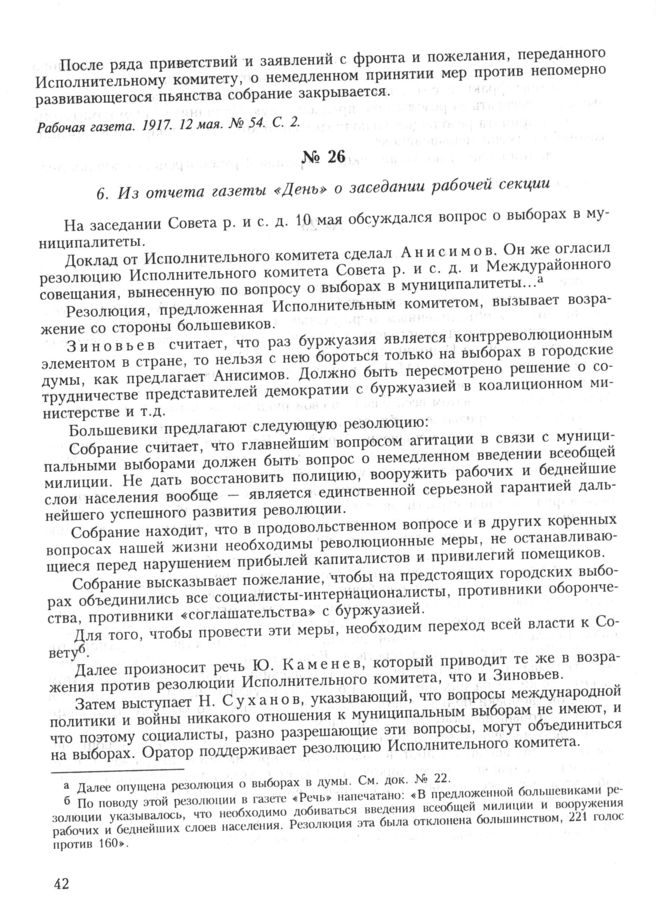 10 мая. IV. Заседание рабочей секции. 6. Из отчета газеты «День» о заседании рабочей секции // День. 1917. 11 мая. № 56. С. 2-3.