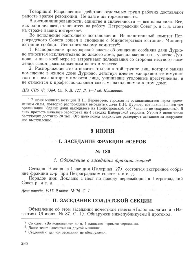 9 июня. I. Заседание фракции эсеров. 1. Объявление о заседании фракции эсеров // Дело народа. 1917. 9 июня. № 70. С. 1.