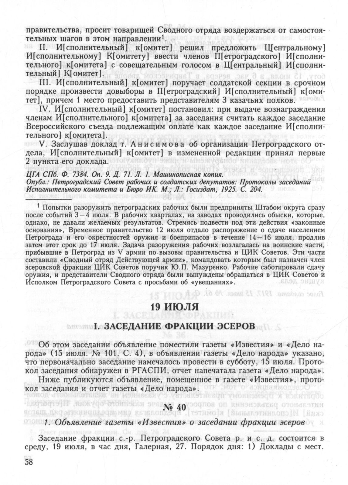 19 июля. I. Заседание фракции эсеров. 1. Объявление газеты «Известия» о заседании фракции эсеров // Известия. 1917. 19 июля. № 121. С. 12.