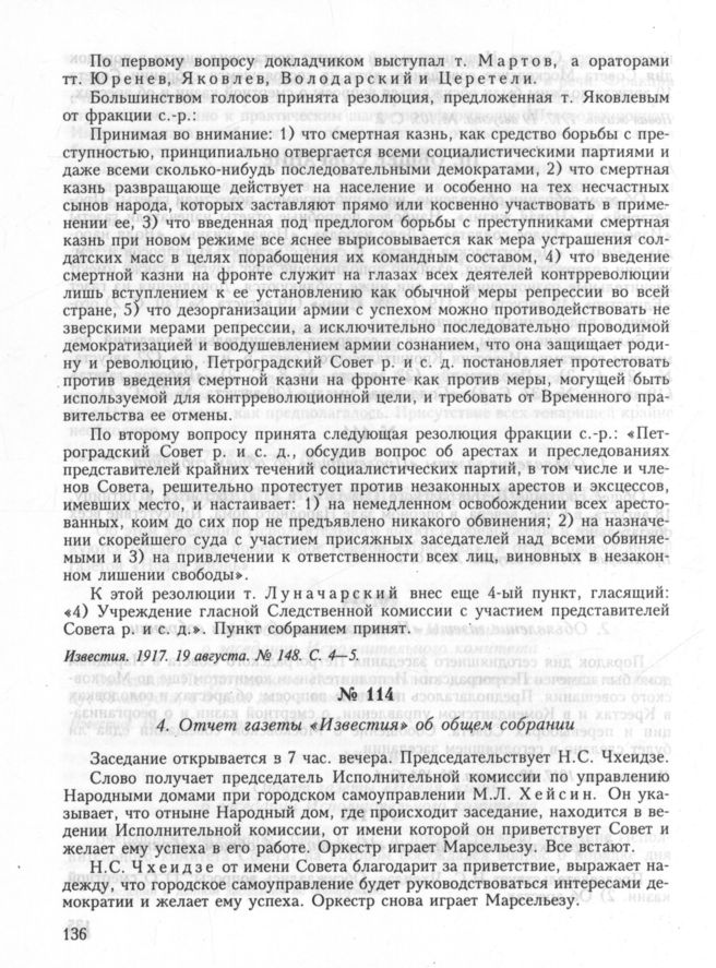 18 августа. III. Общее собрание. 4. Отчет газеты «Известия» об общем собрании // Известия. 1917. 2 0 августа. № 149. С. 6— 7.