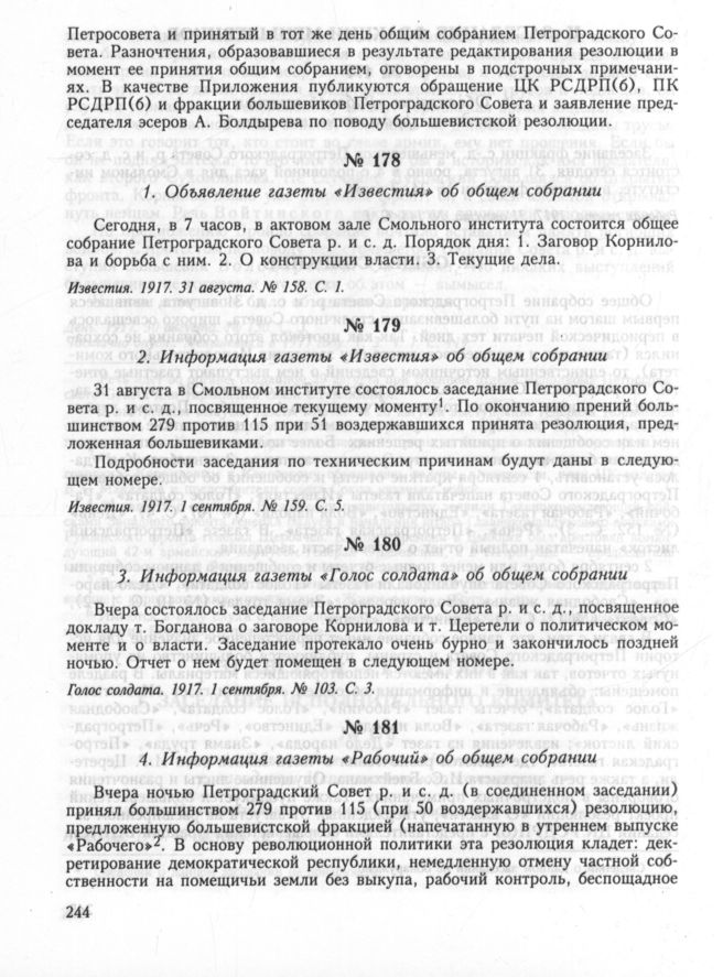 Общее собрание Петроградского Совета рабочих и солдатских депутатов. 31 августа - 1 сентября 1917 г.