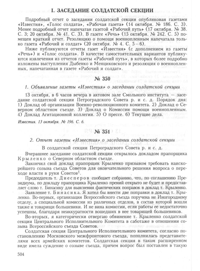 13 октября. II. Заседание солдатской секции. 2. Отчет газеты «Известия» о заседании солдатской секции // Известия. 1917. 14 октября. № 197. С. 5—6.