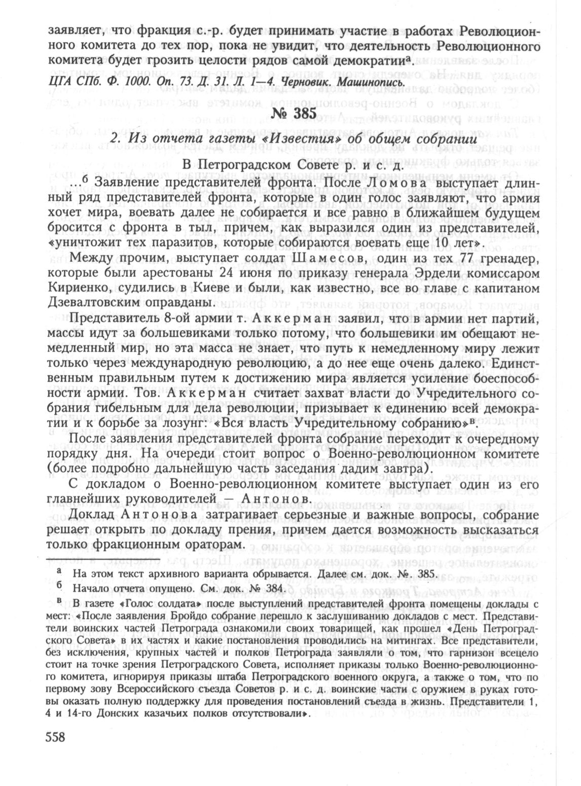 Петроградский Совет рабочих и солдатских депутатов в 1917 году: Протоколы, стенограммы и отчеты, резолюции и постановления общих собраний, собраний секций, заседаний Исполнительного комитета, Бюро Исполнительного комитета и фракций (27 февраля — 25 октября 1917 года). Т. 4 (3 июля — 25 октября 1917 года). — М.: РОССПЭН, 2003.