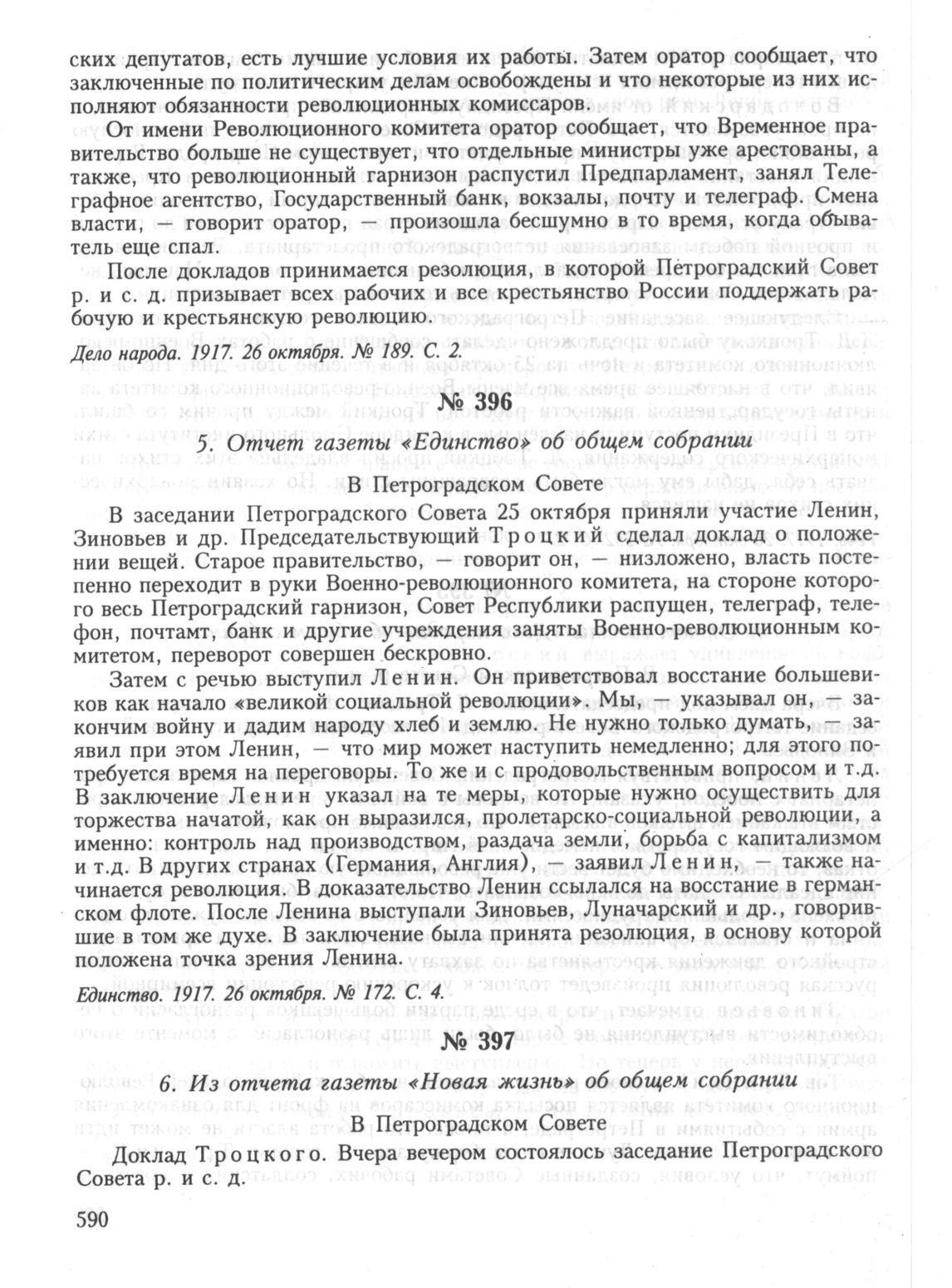 25 октября. II. Общее собрание. 5. Отчет газеты «Единство» об общем собрании // Единство. 1917. 26 октября. № 172. С. 4.