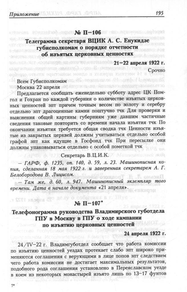 Политбюро и церковь. 1922—1925 гг. В 2-х кн. Кн. 2. — М.: РОССПЭН; Новосибирск: Сибирский хронограф, 1998.