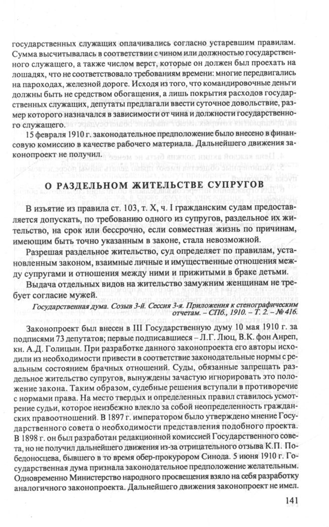О раздельном жительстве супругов. 10 мая 1910 г. // Государственная дума. Созыв 3-й. Сессия 3-я. Приложения к стенографическим отчетам. - СПб., 1910. - Т. 2. - № 416.