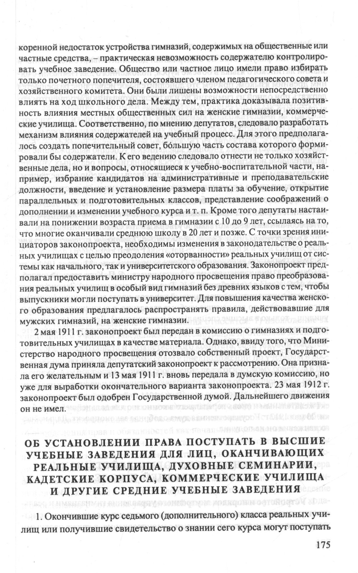 Об установлении права поступать в высшие учебные заведения для лиц, оканчивающих реальные училища, духовные семинарии, кадетские корпуса, коммерческие училища и другие средние учебные заведения. 22 марта 1911 г. // Государственная дума. Созыв 3-й. Сессия 3-я. Приложения к стенографическим отчетам. - СПб., 1911. - Т. 4. - № 351.