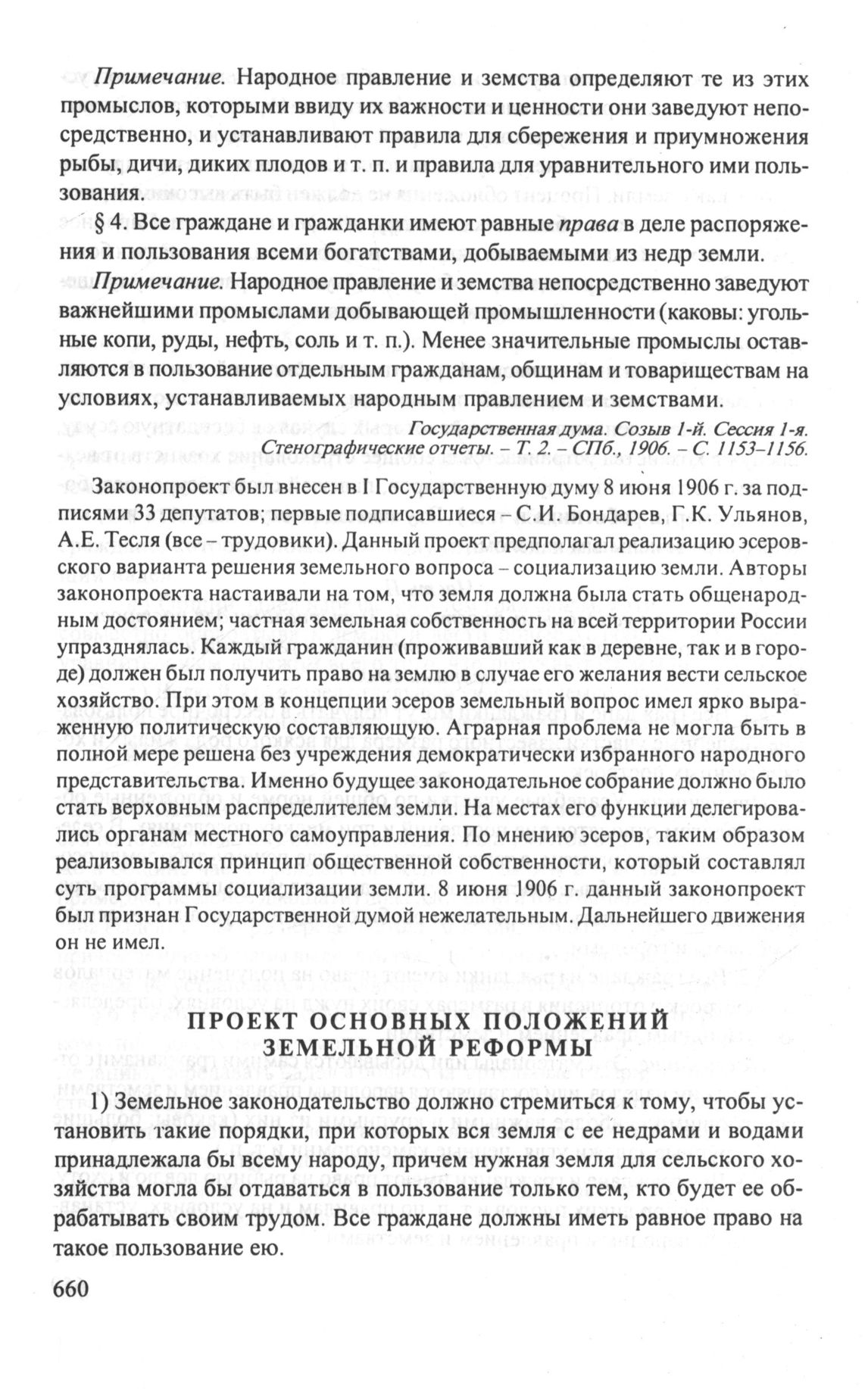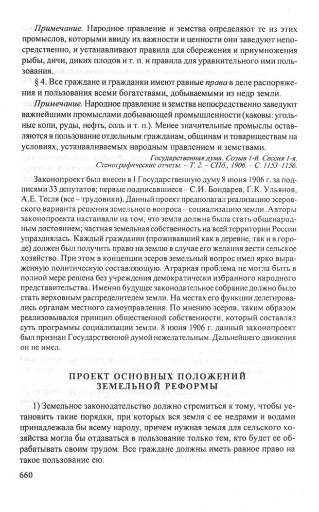 Проект основных положений земельной реформы. 6 марта 1907 г. // Государственная дума. Созыв 2-й. Законодательные заявления, внесенные на основании ст. 55 Учреждения Государственной думы. - СПб., 1907. - С. 8-9.