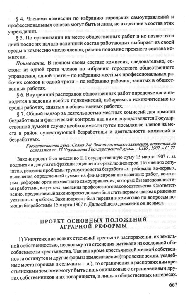 Проект основных положений аграрной реформы. 19 марта 1907 г. // Государственная дума. Созыв 2-й. Законодательные заявления, внесенные на основании ст. 55 Учреждения Государственной думы. - СПб., 1907. - С. 29.