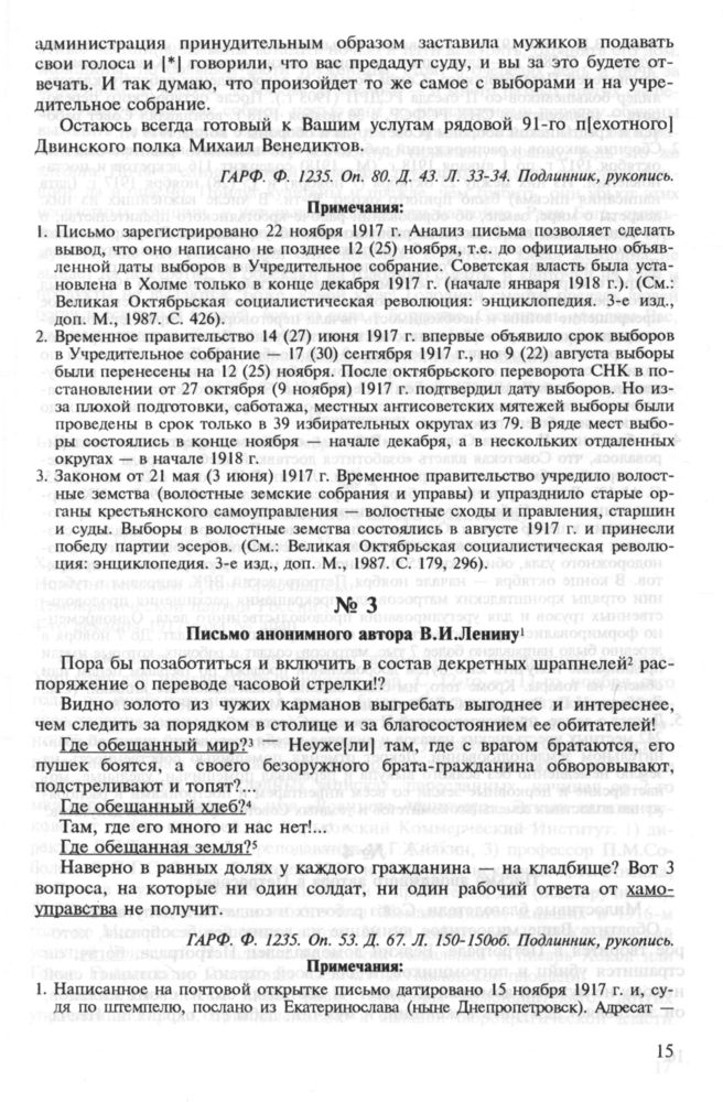 Письмо анонимного автора В.И.Ленину // ГА РФ. Ф. 1235. Oп. 53. Д. 67. Л. 150-150об. Подлинник, рукопись.