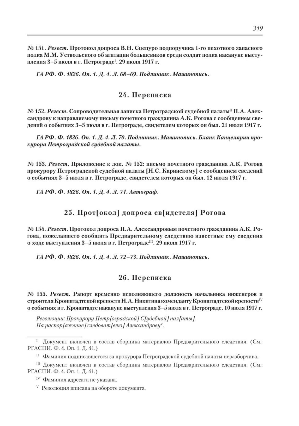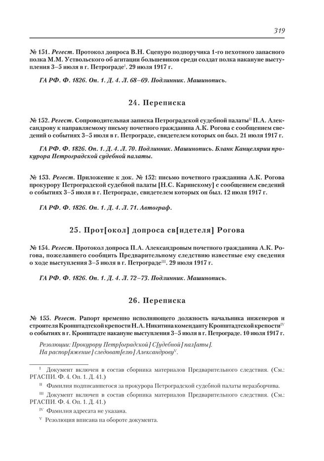 Регест. Приложение к док. № 152: письмо почетного гражданина А.К. Рогова прокурору Петроградской судебной палаты Н.С. Каринскому с сообщением сведений о событиях 3–5 июля в г. Петрограде, свидетелем которых он был. 12 июля 1917 г. // ГА РФ. Ф. 1826. Оп. 1. Д. 4. Л. 71. Автограф.