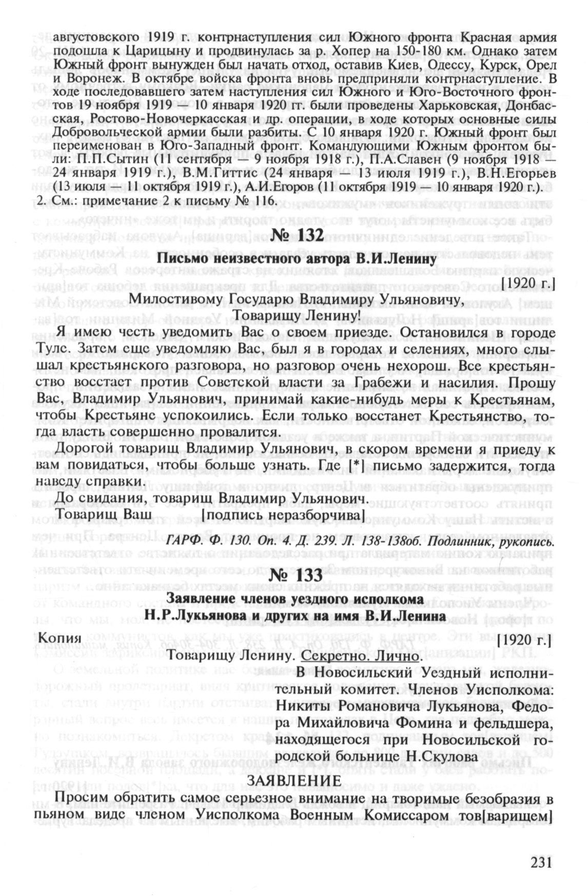 Заявление членов уездного исполкома Н.Р.Лукьянова и других на имя В.И.Ленина. [1920 г.] // ГА РФ. Ф. 130. Oп. 4. Д. 238. Л. 304-304об. Копия, машинопись.