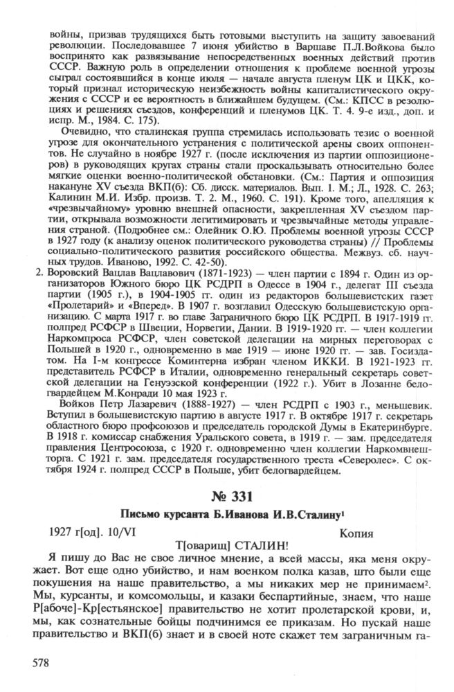 Письмо курсанта Б.Иванова И.В.Сталину // РЦХИДНИ. Ф. 17. Oп. 85. Д. 514. Л. 45. Копия, машинопись.