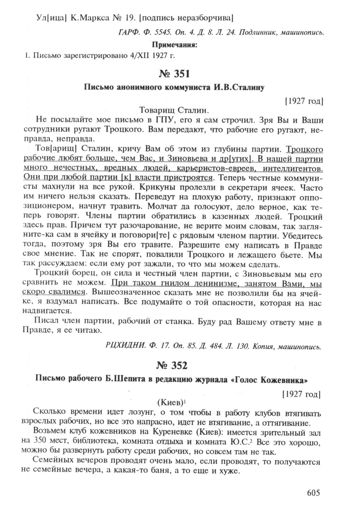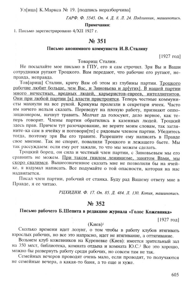 Письма во власть. 1917—1927. Заявления, жалобы, доносы, письма в государственные структуры и большевистским вождям. — М.: РОССПЭН, 1998.