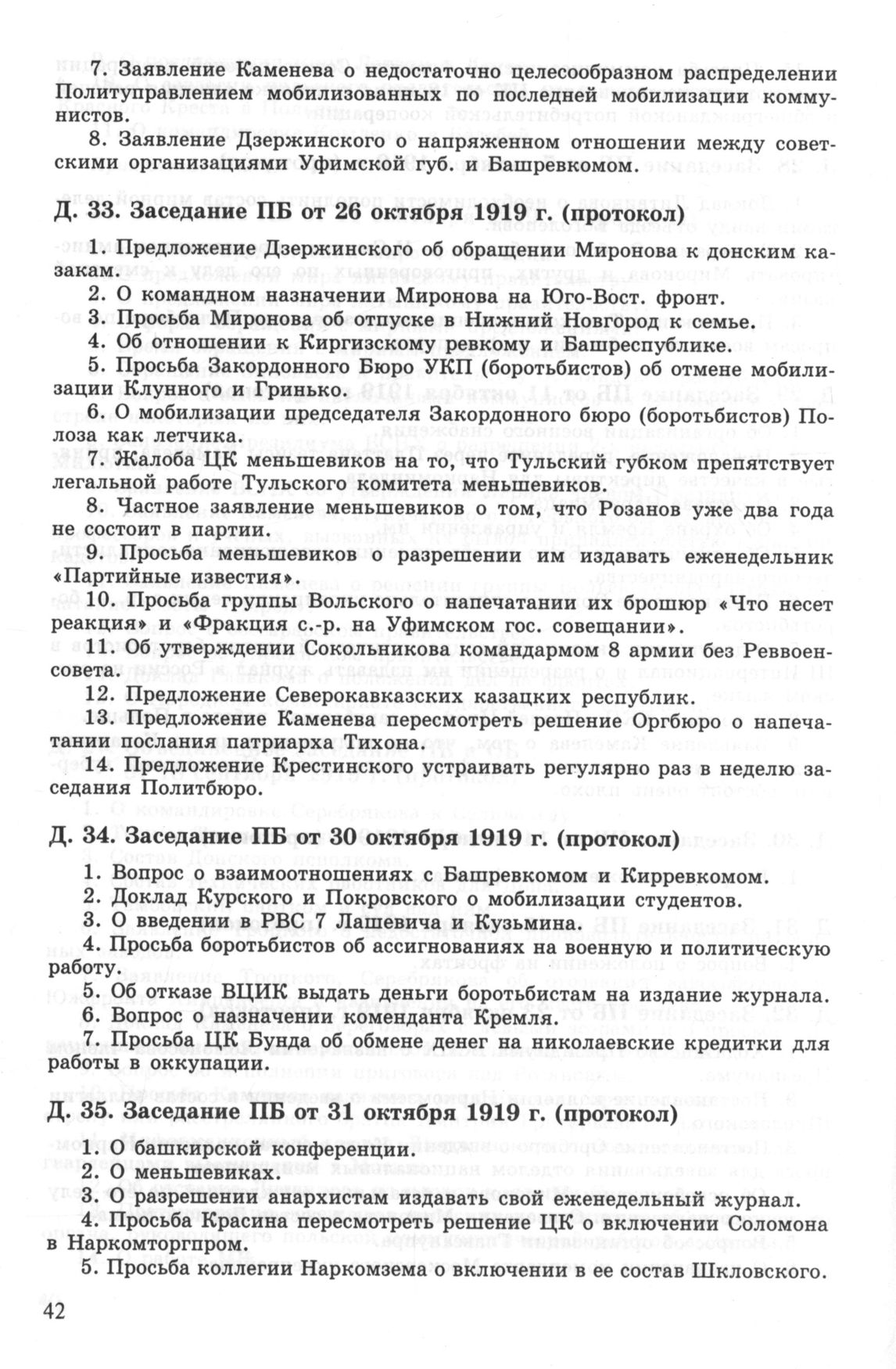 Повестка дня заседания ПБ ЦК РКП(б) от 30 октября 1919 г. (протокол) // РГАСПИ. Ф. 17. Оп. 3. Д. 34.