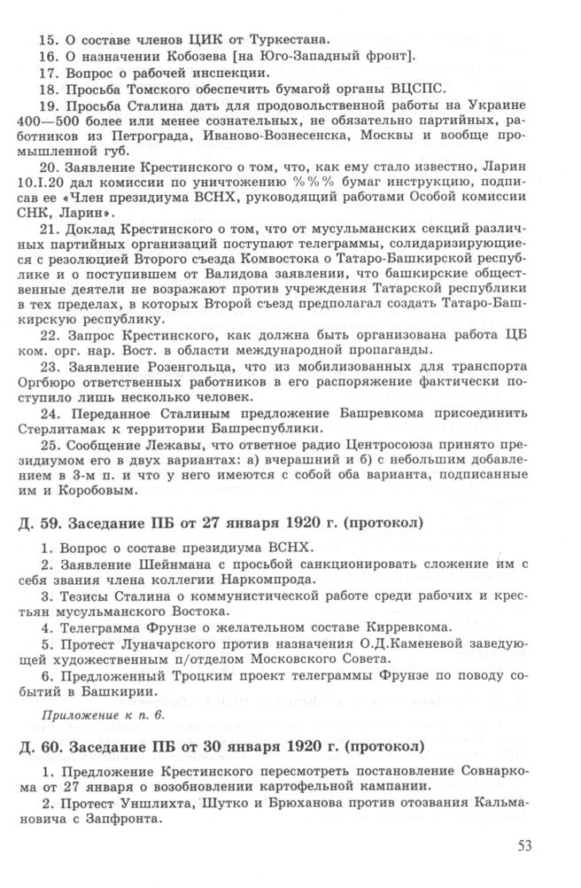 Повестка дня заседания ПБ ЦК РКП(б) от 27 января 1920 г. (протокол) // РГАСПИ. Ф. 17. Оп. 3. Д. 59.