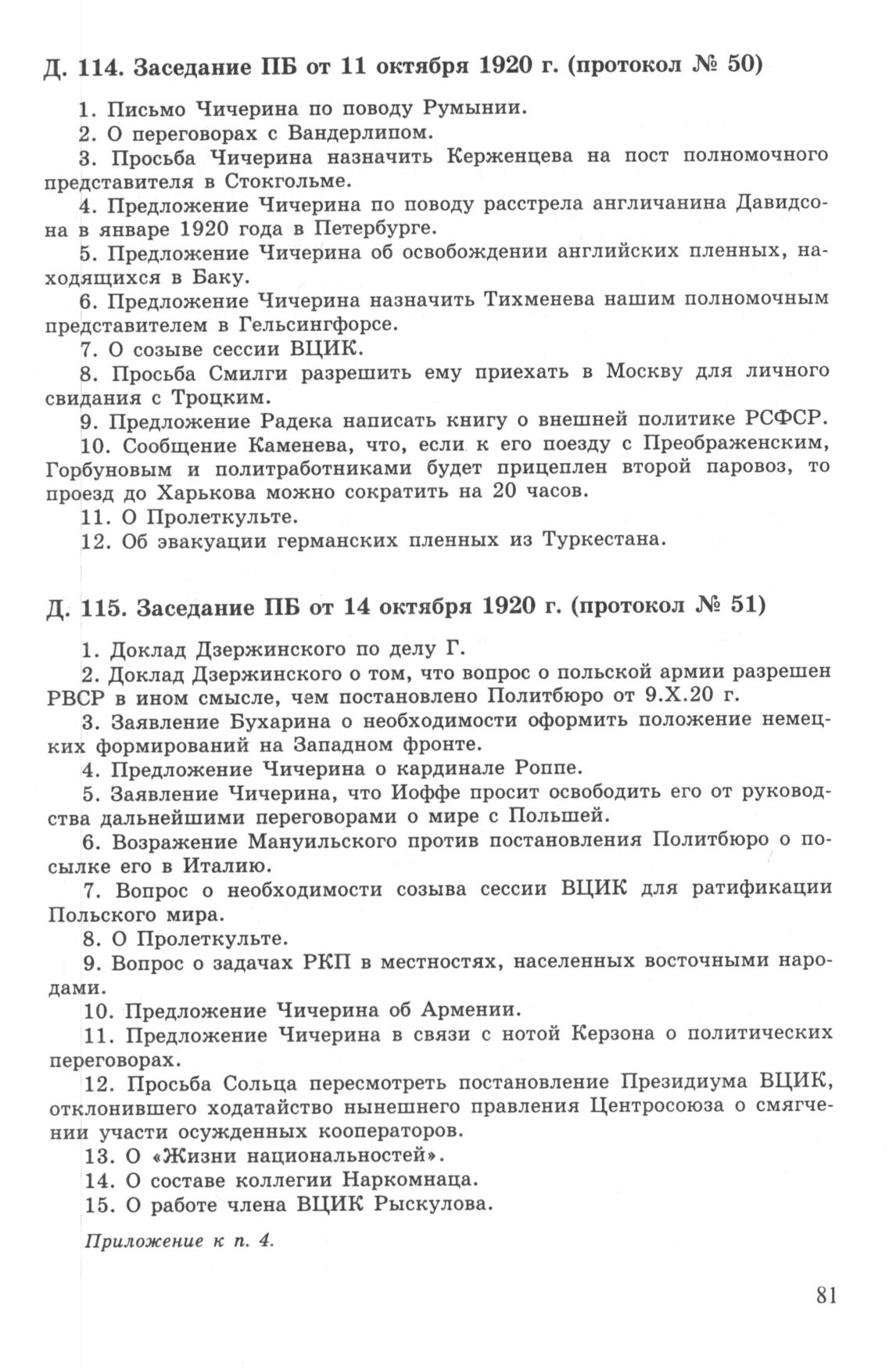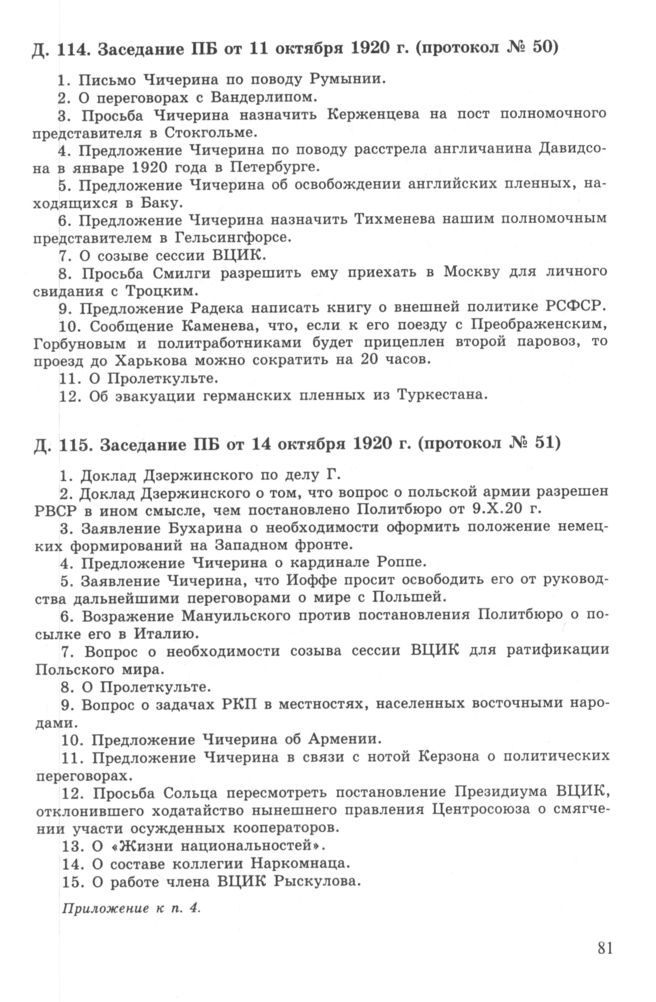 Повестка дня заседания ПБ ЦК РКП(б) от 11 октября 1920 г. (протокол № 50) // РГАСПИ. Ф. 17. Оп. 3. Д. 114.