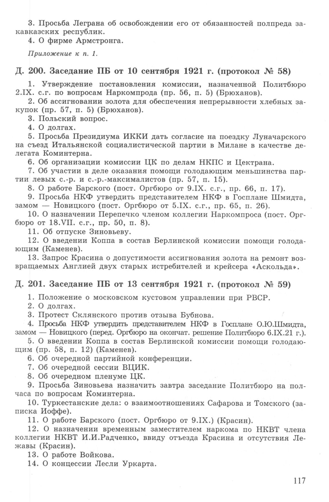 Повестка дня заседания ПБ ЦК РКП(б) от 10 сентября 1921 г. (протокол № 58) // РГАСПИ. Ф. 17. Оп. 3. Д. 200.
