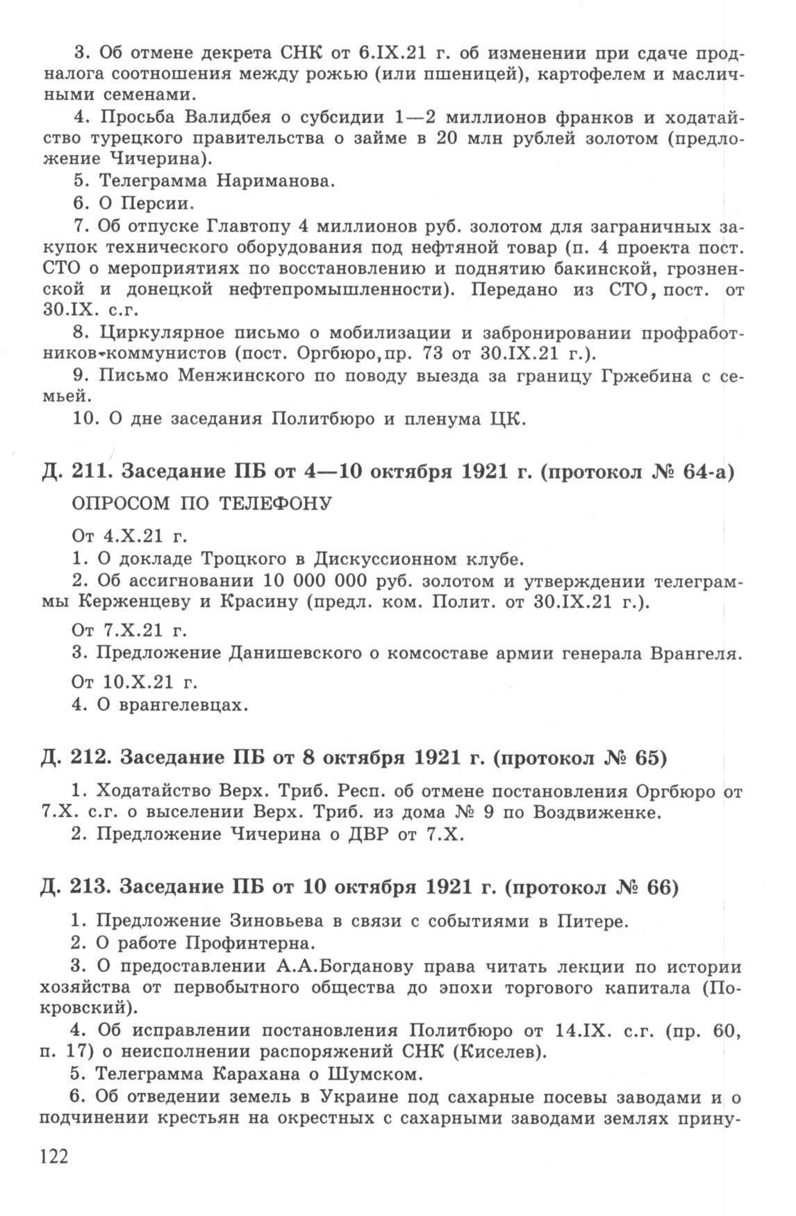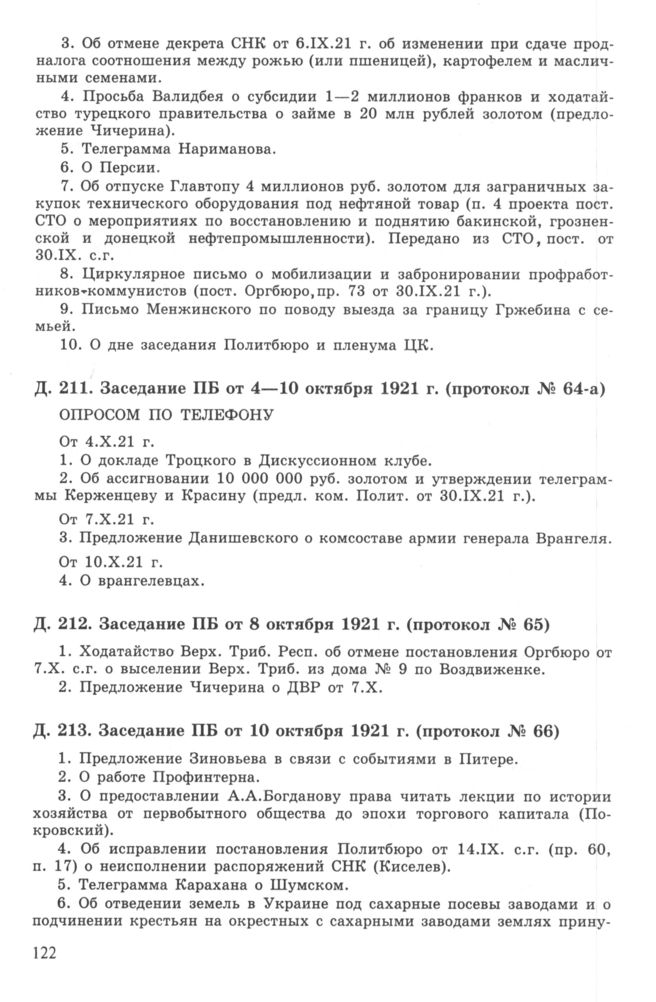 Повестка дня заседания ПБ ЦК РКП(б) от 4—10 октября 1921 г. (протокол № 64-а) // РГАСПИ. Ф. 17. Оп. 3. Д. 211.