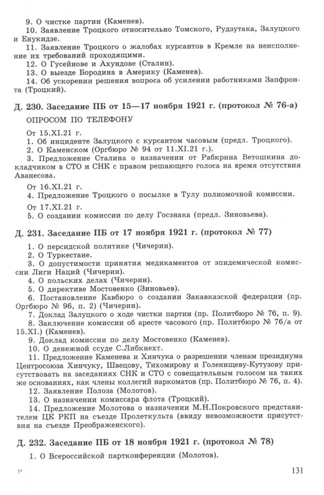 Повестка дня заседания ПБ ЦК РКП(б) от 18 ноября 1921 г. (протокол № 78) // РГАСПИ. Ф. 17. Оп. 3. Д. 232.