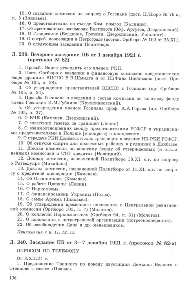 Повестка дня заседания ПБ ЦК РКП(б) от 3—7 декабря 1921 г. (протокол № 82-а) // РГАСПИ. Ф. 17. Оп. 3. Д. 240.