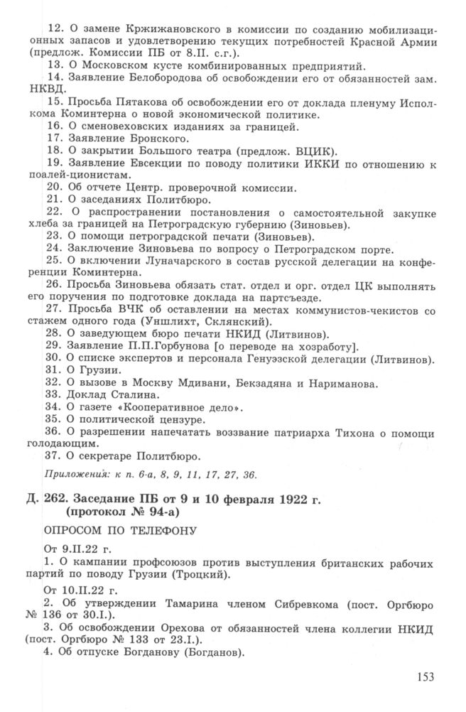 Повестка дня заседания ПБ ЦК РКП(б) от 9 и 10 февраля 1922 г. (протокол № 94-а) // РГАСПИ. Ф. 17. Оп. 3. Д. 262.