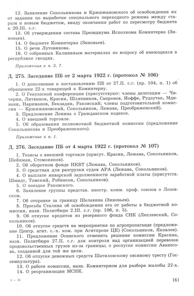 Повестка дня заседания ПБ ЦК РКП(б) от 4 марта 1922 г. (протокол № 107) // РГАСПИ. Ф. 17. Оп. 3. Д. 276.
