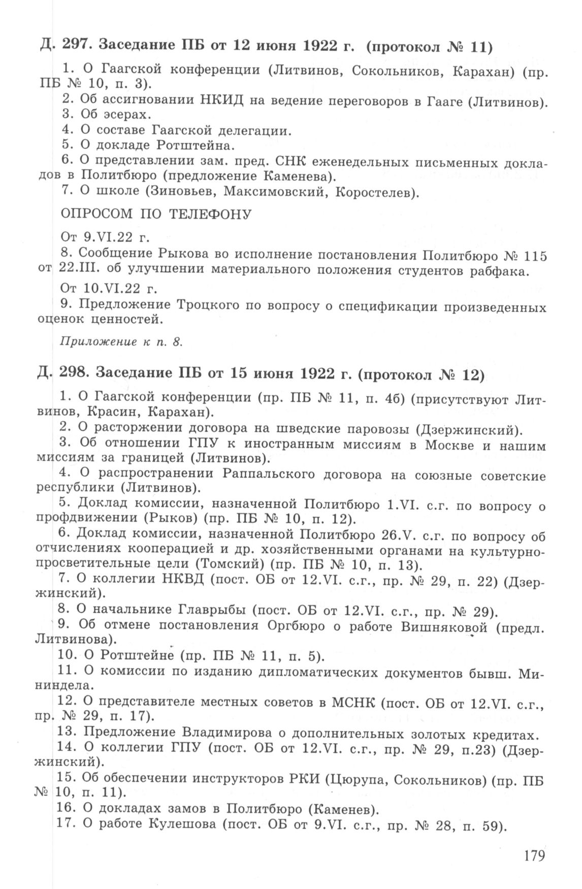 Повестка дня заседания ПБ ЦК РКП(б) от 12 июня 1922 г. (протокол № 11) // РГАСПИ. Ф. 17. Оп. 3. Д. 297.