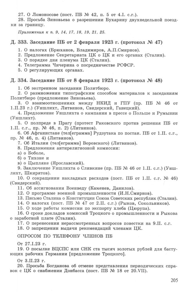 Повестка дня заседания ПБ ЦК РКП(б) от 2 февраля 1923 г. (протокол № 47) // РГАСПИ. Ф. 17. Оп. 3. Д. 333.