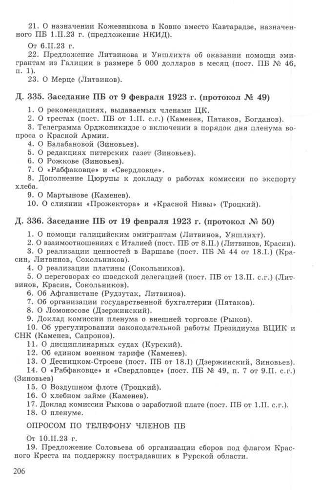 Повестка дня заседания ПБ ЦК РКП(б) от 9 февраля 1923 г. (протокол № 49) // РГАСПИ. Ф. 17. Оп. 3. Д. 335.