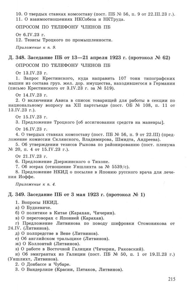 Повестка дня заседания ПБ ЦК РКП(б) от 13—21 апреля 1923 г. (протокол № 62) // РГАСПИ. Ф. 17. Оп. 3. Д. 348.