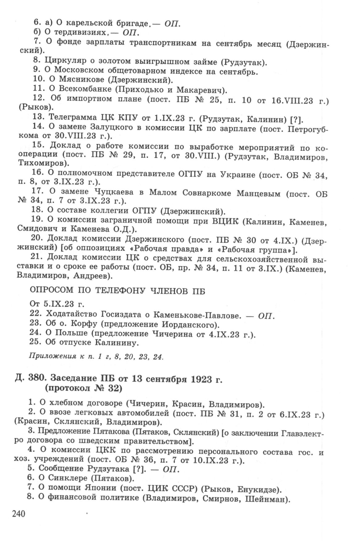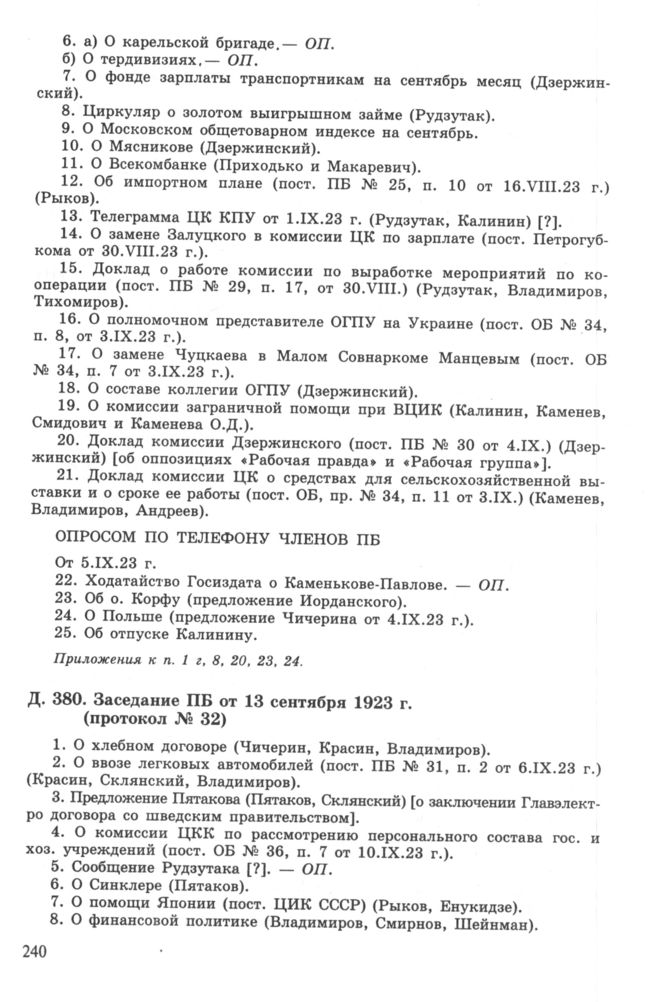 Повестка дня заседания ПБ ЦК РКП(б) от 13 сентября 1923 г. (протокол № 32) // РГАСПИ. Ф. 17. Оп. 3. Д. 380.