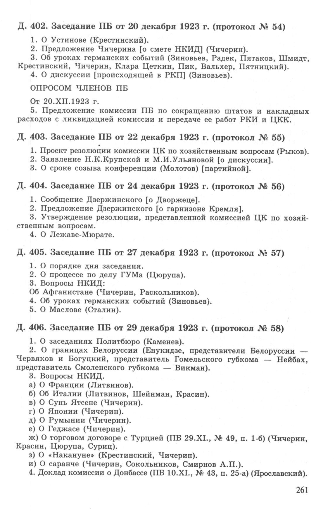 Повестка дня заседания ПБ ЦК РКП(б) от 27 декабря 1923 г. (протокол № 57) // РГАСПИ. Ф. 17. Оп. 3. Д. 405.