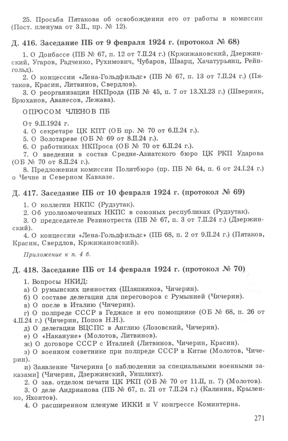 Повестка дня заседания ПБ ЦК РКП(б) от 14 февраля 1924 г. (протокол № 70) // РГАСПИ. Ф. 17. Оп. 3. Д. 418.