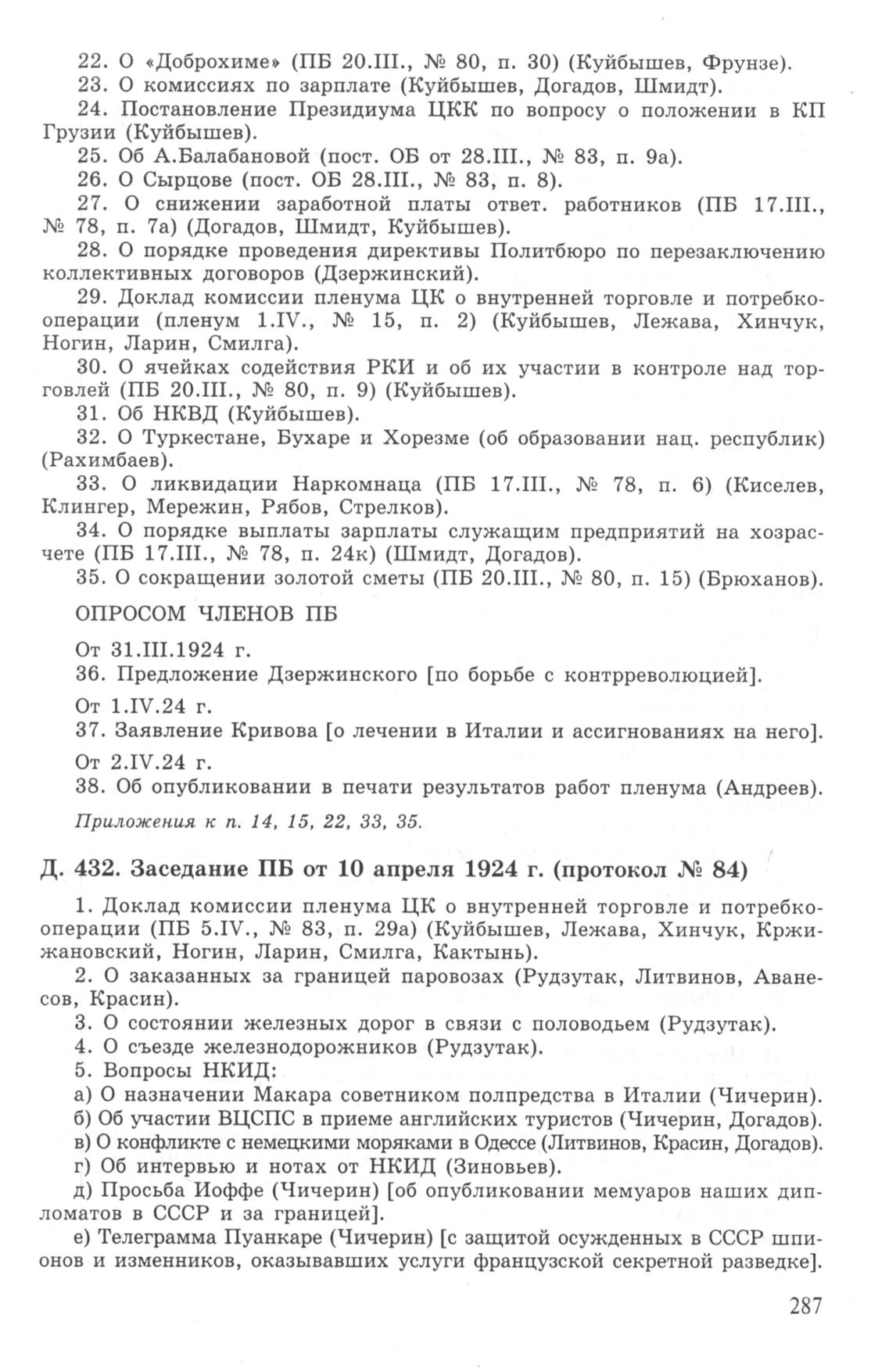 Повестка дня заседания ПБ ЦК РКП(б) от 10 апреля 1924 г. (протокол № 84) // РГАСПИ. Ф. 17. Оп. 3. Д. 432.