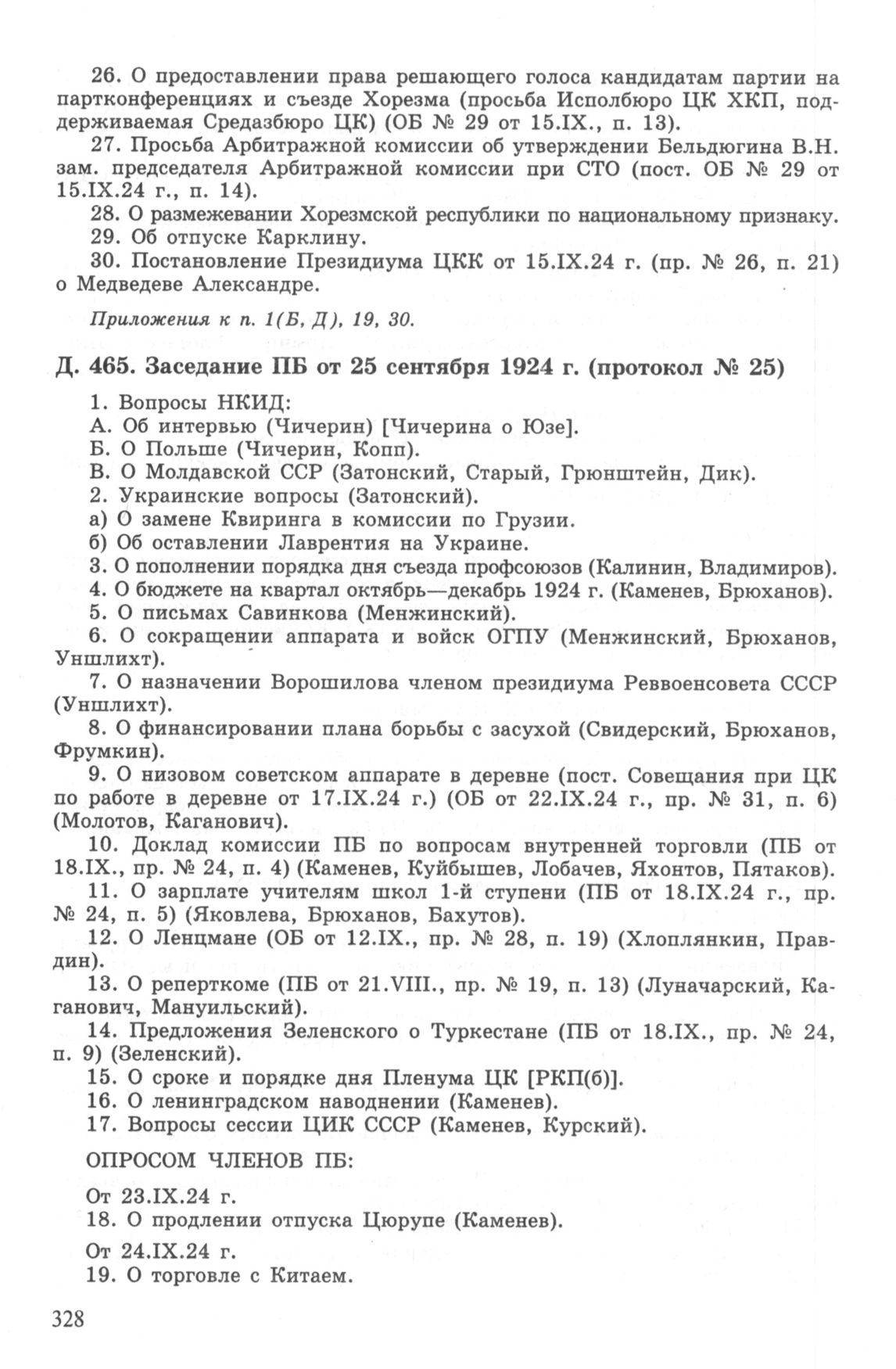 Повестка дня заседания ПБ ЦК РКП(б) от 25 сентября 1924 г. (протокол № 25) // РГАСПИ. Ф. 17. Оп. 3. Д. 465.