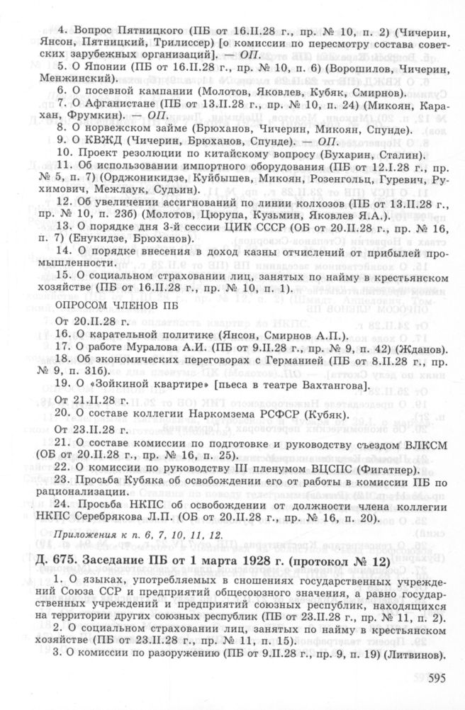 Повестка дня заседания ПБ ЦК ВКП(б) от 1 марта 1928 г. (протокол № 12) // РГАСПИ. Ф. 17. Оп. 3. Д. 675.
