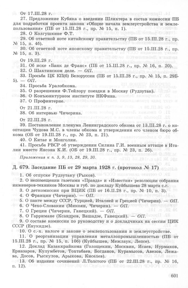 Повестка дня заседания ПБ ЦК ВКП(б) от 29 марта 1928 г. (протокол № 17) // РГАСПИ. Ф. 17. Оп. 3. Д. 679.