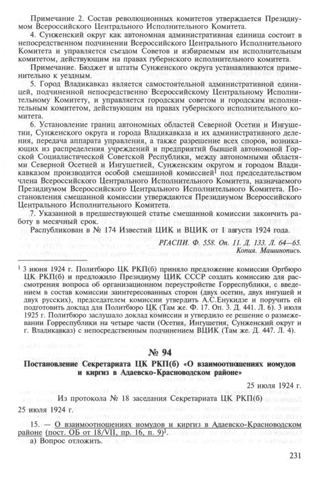 Постановление Секретариата ЦК РКП(б) «О взаимоотношениях иомудов и киргиз в Адаевско-Красноводском районе». 25 июля 1924 г. // РГАСПИ. Ф. 17. Oп. 112. Д. 583. Л. 5. Подлинник. Машинопись.