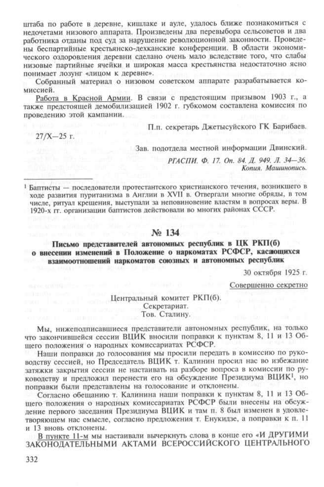 Письмо представителей автономных республик в ЦК РКП(б) о внесении изменений в Положение о наркоматах РСФСР, касающихся взаимоотношений наркоматов союзных и автономных республик. 30 октября 1925 г.