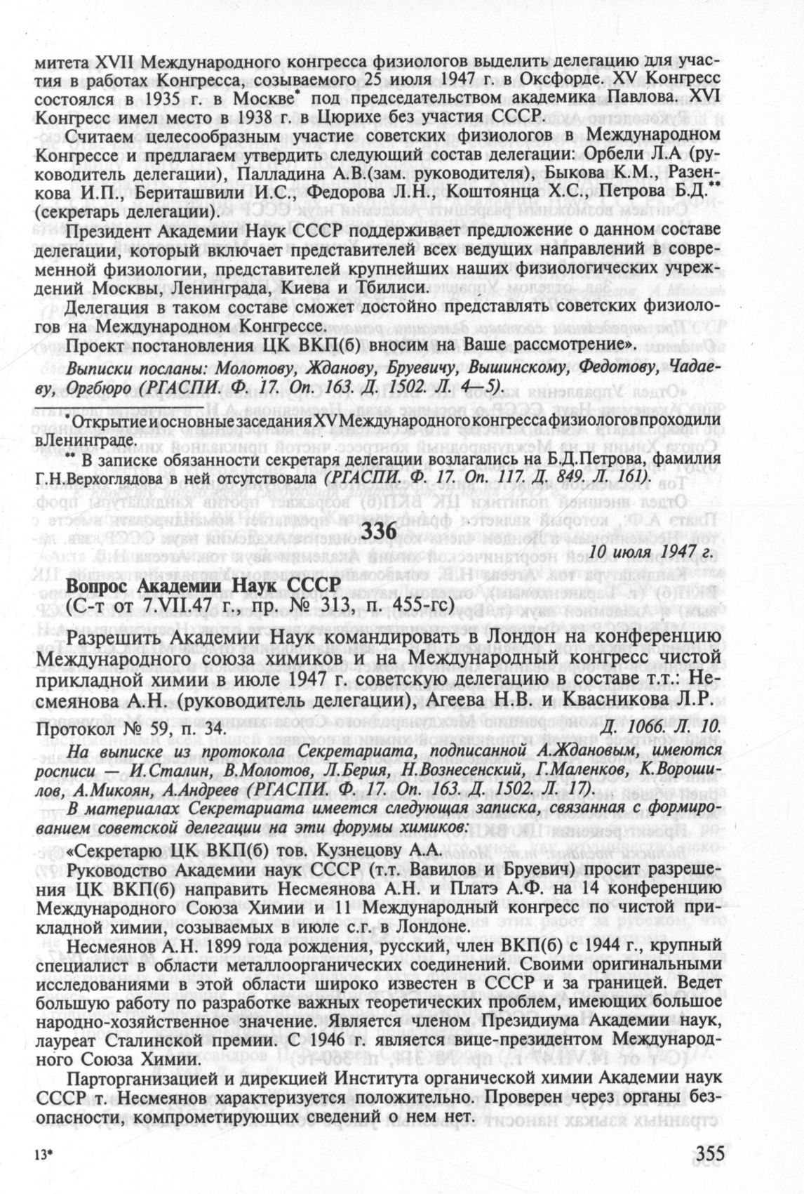 Вопрос Академии Наук СССР (С-т от 7.VII.47 г., пр. № 313, п. 455-гс...