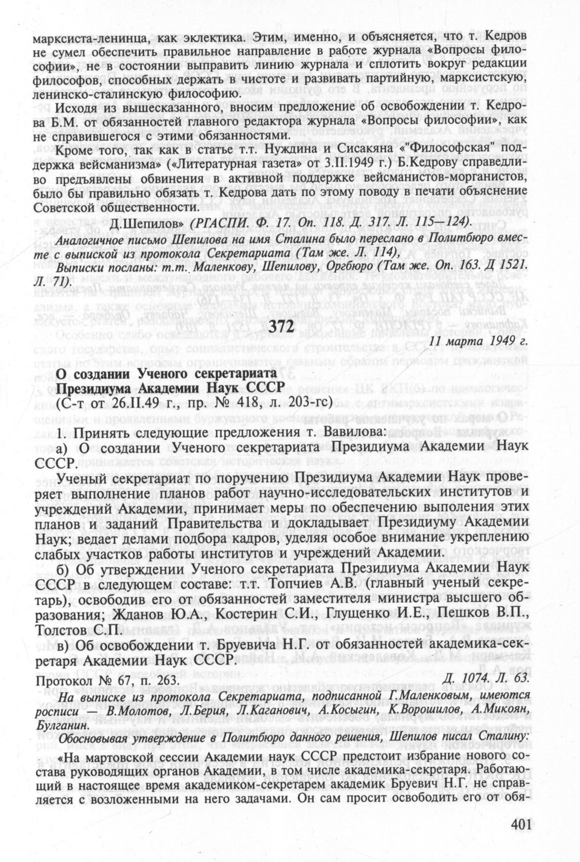 Академия наук в решениях Политбюро ЦК РКП(б)—ВКП(б)—КПСС. 1922—1991. 1922—1952. — М.: РОССПЭН, 2000.