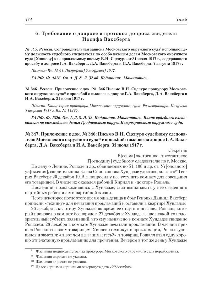 Следственное дело большевиков. Июль–октябрь 1917 г. Сборник документов в 2 кн. Кн. 1. — М. : РОССПЭН, 2012.