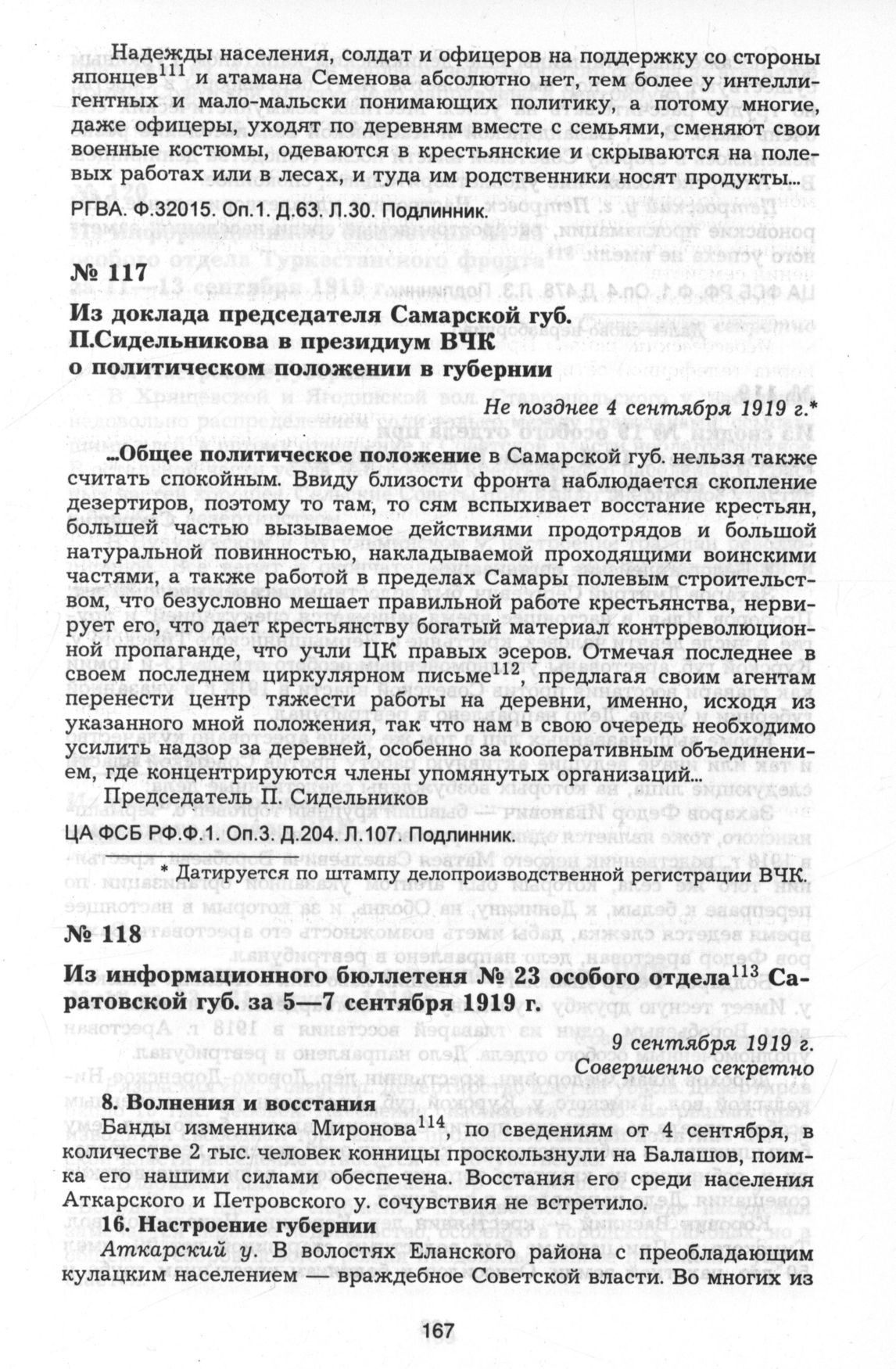 Из информационного бюллетеня № 23 особого отдела Саратовской губ. за 5—7 сентября 1919 г. 9 сентября 1919 г. Совершенно секретно